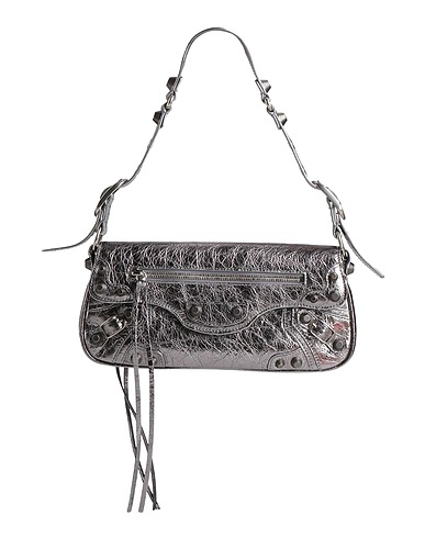 сумка-багет, кожа, металлик, одноцветное изделие, заклепки, магнитная застежка, внутри на подкладке, внешний карман, модель среднего размера, содержит нетекстильные части животного происхождения
