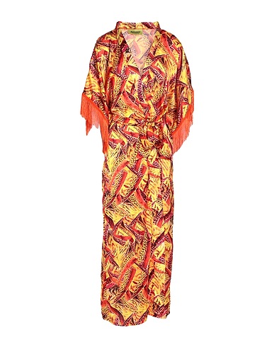 атлас, логотип бренда, с бахромой, животный принт, рукава длиной ¾, пояс на талии, без карманов, стрейч