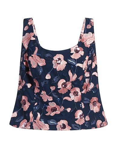top, tulle, floral-print, sequins, embroidered, scoop neckline, sleeveless, fully lined, zipper fastening, hand wash, do not bleach, do not tumble dry