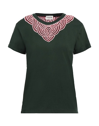 t-shirt, jersey, solid color with appliqués, embroidered, beads, crewneck, short sleeves, hand wash, do not bleach, do not tumble dry