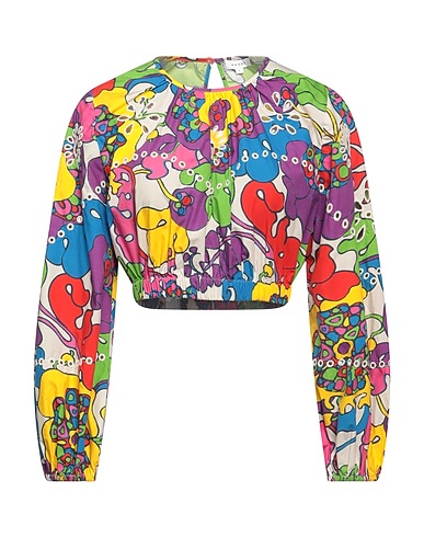 top, woven, floral-print, embroidered, crewneck, long sleeves, button fastenings
