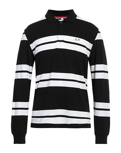 piqué, stretchy fabric, striped, brand logo, buttoned neckline, long sleeves, button fastenings, side slit hemline