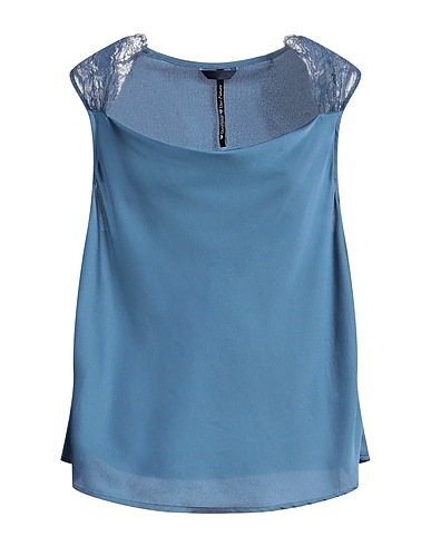 top, cady, solid color, brand logo, lace trims, draped neckline, sleeveless, this item contains repreve® recycled polyester