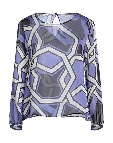 top, satin, geometric-print, no appliqués, crewneck, long sleeves, elasticated cuffs, 1 button