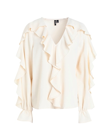 ruched top, woven, solid color, ruffles, v-neck, long sleeves