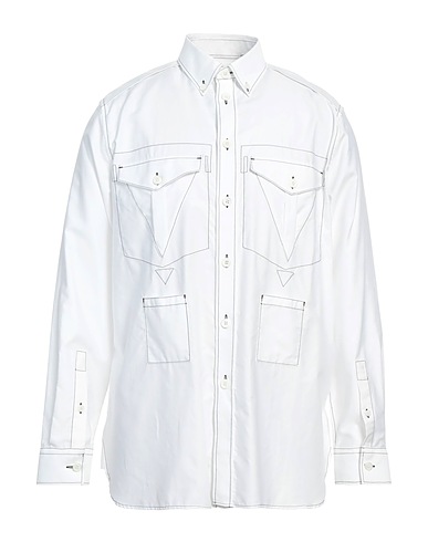 woven, brand logo, solid color, button-down collar, long sleeves, button fastenings, multipockets, pocket with buttons, contains non-textile parts of animal origin, overshirt
