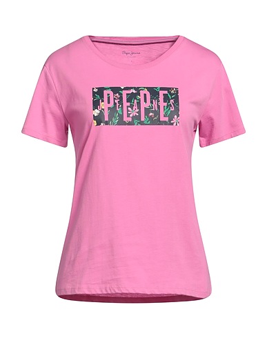 printed t-shirt, jersey, solid color with print, brand logo, crewneck, short sleeves