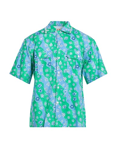 plain weave, no appliqués, floral design, classic neckline, short sleeves, button closing, two breast pockets, large sized