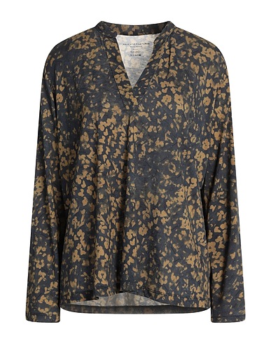 printed t-shirt, jersey, multicolor, no appliqués, mandarin collar, long sleeves