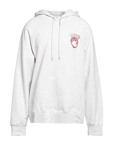 sweatshirt fleece, brand logo, solid color with print, hooded, long sleeves, leather backing, single pocket, this item contains certified organic fibers.