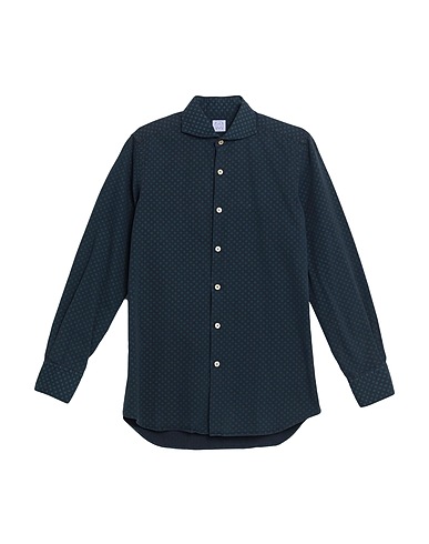 gabardine, no appliqués, geometric design, classic collar, long sleeves, button closing, no pockets
