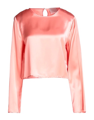 top, satin, no appliqués, solid color, crewneck, long sleeves, 1 button, large sized