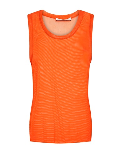 top, tulle, solid color, no appliqués, crewneck, sleeveless, stretch