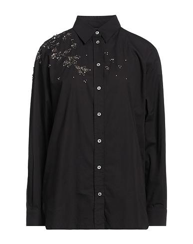 shirt, woven, solid color with appliqués, sequins, classic collar, long sleeves, button fastenings