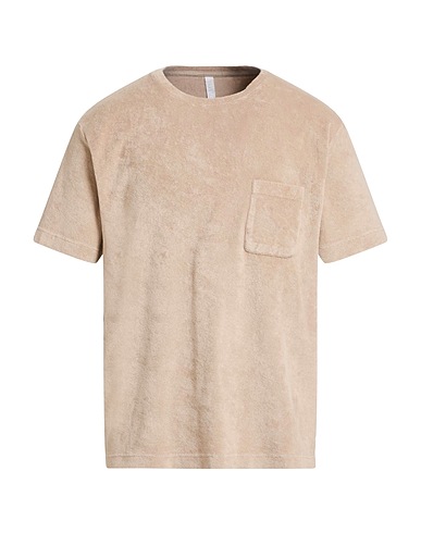 t-shirt, terrycloth, solid color, brand logo, crewneck, short sleeves, one chest pocket, machine wash, do not tumble dry
