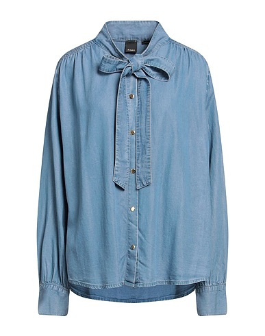 bow shirt, woven, denim effect, darts, solid color, bow-tie neckline, long sleeves, snap fastenings, no pockets