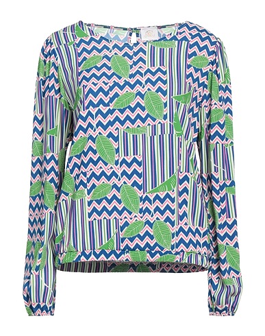 woven, no appliqués, floral-print, striped, crewneck, long sleeves, cuffs with elastic, 1 button, no pockets, with elastic bottom, top