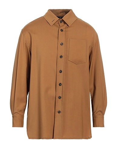 HEVÒ Solid color shirt MARRONE 100% Virgin Wool