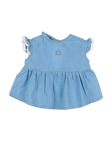 chambray, two-tone, embroidered, crewneck, short sleeves, tie fastening, do not bleach, do not tumble dry