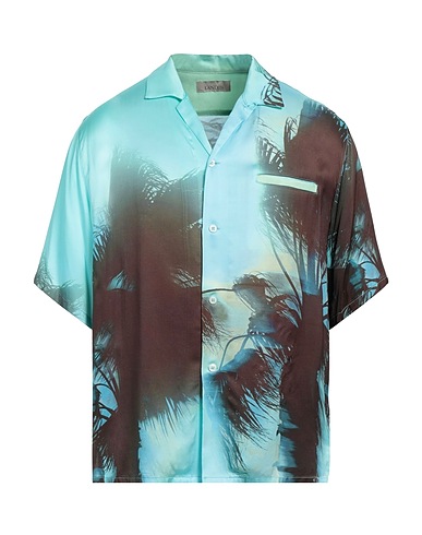 satin, no appliqués, floral-print, classic collar, short sleeves, button fastenings, single pocket, regular-fit shirt