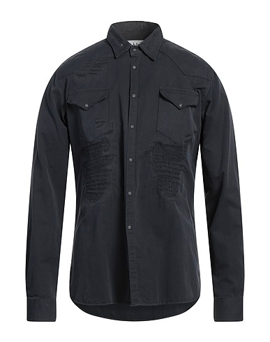 woven, distressed, no appliqués, solid color, classic collar, long sleeves, snap button cuffs, snap fastenings, two breast pockets, regular-fit shirt