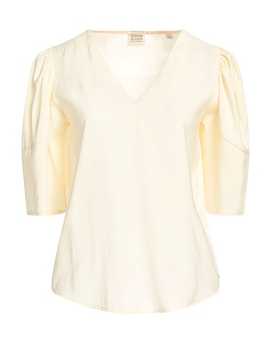 woven, brand logo, solid color, v-neck, short sleeves, no pockets, top