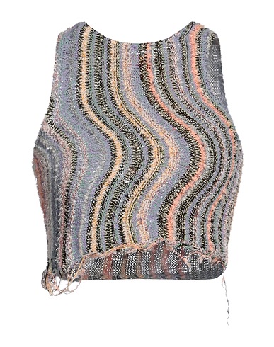 knitted, distressed, lightweight knit, no appliqués, multicolor, crewneck, sleeveless, no pockets, crop top