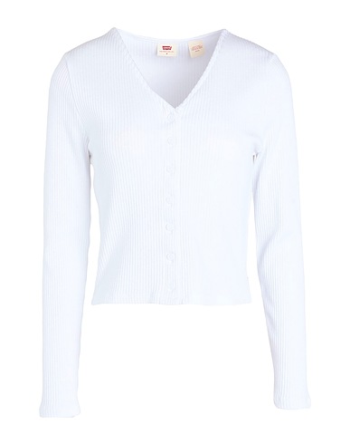 jersey, ribbed, lightweight knit, brand logo, solid color, v-neck, long sleeves, button fastenings, no pockets, stretch
