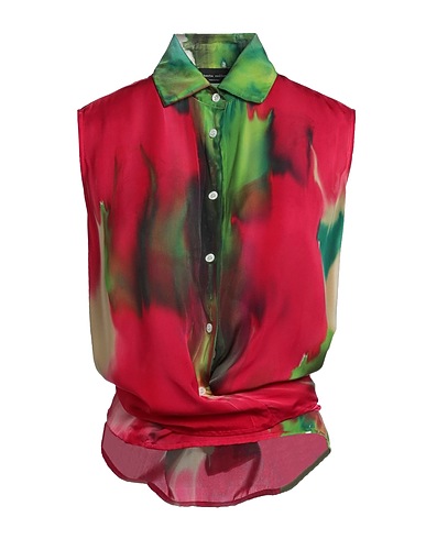 crepe, no appliqués, multicolor, classic collar, sleeveless, button fastenings, no pockets, shirt