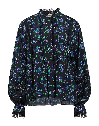 satin, lace, brand logo, floral-print, mandarin collar, long sleeves, cuffs with elastic, button fastenings, no pockets, ruched shirt