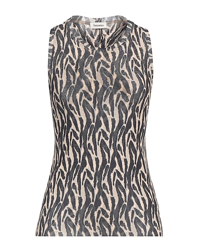top, jersey, brand logo, tiger-print, crewneck, sleeveless, no pockets, machine wash or dry clean, do not tumble dry, do not bleach