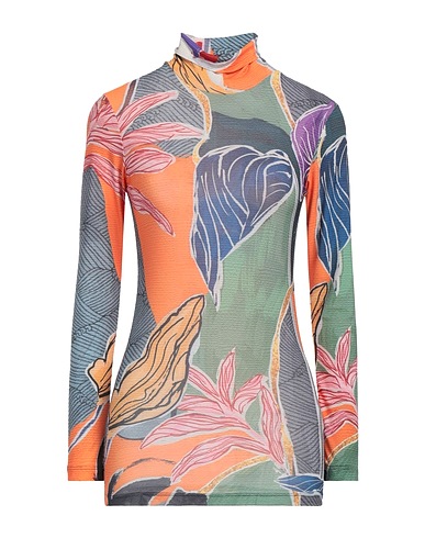 synthetic jersey, no appliqués, multicolor, turtleneck, long sleeves, without pockets, stretch, t-shirt