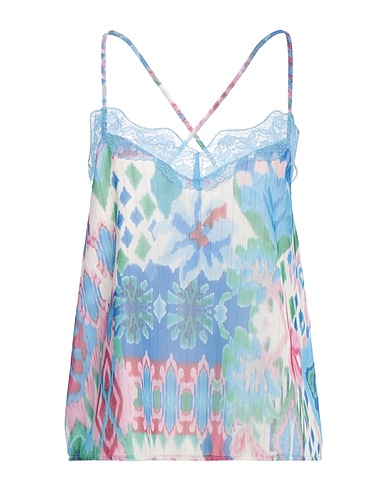 camisole, crepe, metallic, multicolor, lace trims, deep neckline, sleeveless, dry clean, do not bleach, do not tumble dry