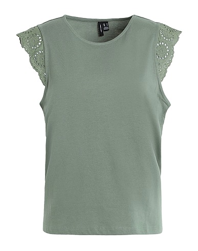 jersey, broderie anglaise, no appliqués, solid color, crewneck, short sleeves, cap sleeves, machine wash, do not bleach, do not tumble dry, top