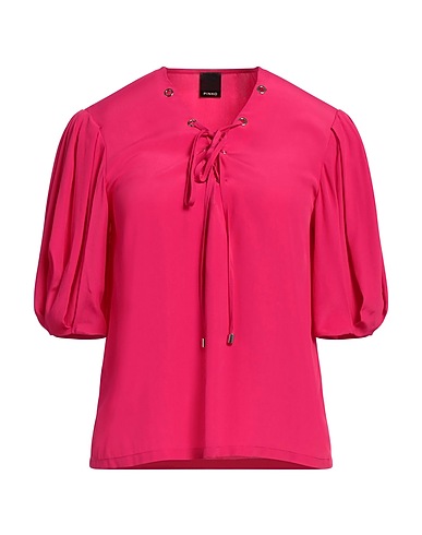 top, crepe, solid color, no appliqués, v-neck, short sleeves, tie fastening, dry clean, do not bleach, do not tumble dry