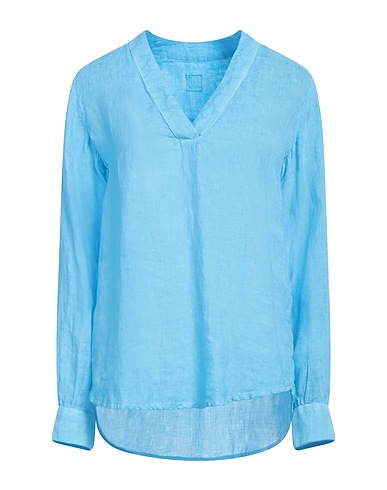 top, linen, solid color, no appliqués, v-neck, long sleeves, buttoned cuffs, button fastenings, machine wash or dry clean, do not bleach, do not tumble dry