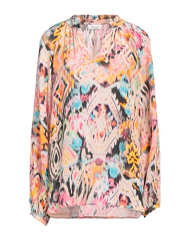 satin, gathered, multicolor, v-neck, long sleeves, buttoned cuffs, side slit hemline, machine wash or dry clean, do not bleach, do not tumble dry, top