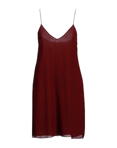 crepe, no appliqués, solid color, deep neckline, sleeveless, fully lined, without pockets, dry clean, do not bleach, do not tumble dry, slip dress, this brand runs large
