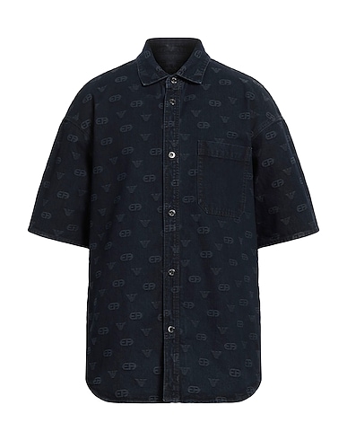 denim, no appliqués, logo-print, dark wash, classic collar, short sleeves, button fastenings, multipockets, machine wash, do not bleach, do not tumble dry