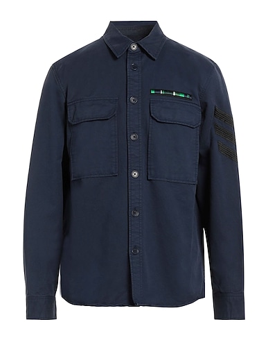 regular-fit shirt, woven, brand logo, embellished, solid color with appliqués, classic collar, long sleeves, buttoned cuffs, button fastenings, two chest pockets, machine wash or dry clean, do not bleach, do not tumble dry