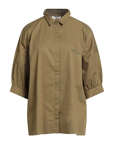 shirt, woven, solid color, embroidered, classic collar, short sleeves, button fastenings, hand wash or dry clean, do not bleach, do not tumble dry