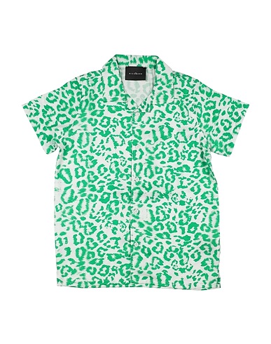 satin, no appliqués, leopard-print, classic collar, short sleeves, button fastenings, without pockets, machine wash, do not bleach, do not tumble dry
