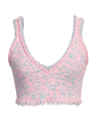 crop top, bouclé, metallic, embellished, brand logo, fringes, two-tone, deep neckline, sleeveless, without pockets, dry clean, do not bleach, do not tumble dry, this brand runs small