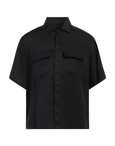 safari shirt, twill, solid color, no appliqués, classic collar, short sleeves, button fastenings, two chest pockets, machine wash or dry clean, do not bleach, do not tumble dry, this brand runs large