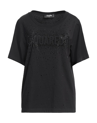 t-shirt, jersey, solid color with appliqués, brand logo, crystals, crewneck, short sleeves, without pockets, hand wash or dry clean, do not bleach, do not tumble dry