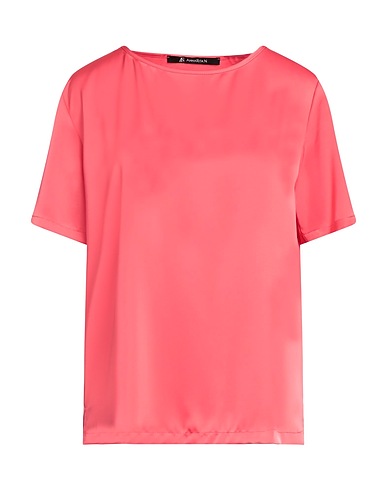 top, satin, solid color, no appliqués, crewneck, short sleeves, machine wash or dry clean, do not bleach, do not tumble dry