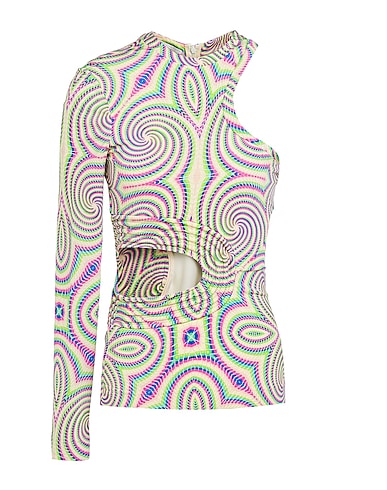 top, jersey, multicolor, cutout, crewneck, sleeveless, fully lined, zipper fastening, stretch, dry clean, do not bleach, do not tumble dry