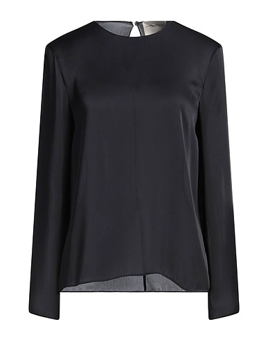 top, satin, solid color, no appliqués, crewneck, long sleeves, 1 button, dry clean, do not bleach, do not tumble dry