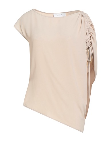 top, crepe, solid color, gathered, scoop