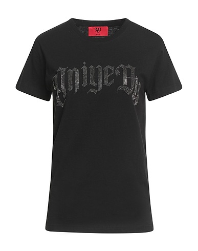 t-shirt, jersey, solid color with appliqués, brand logo, crystals, crewneck, short sleeves, hand wash, do not bleach, do not tumble dry
